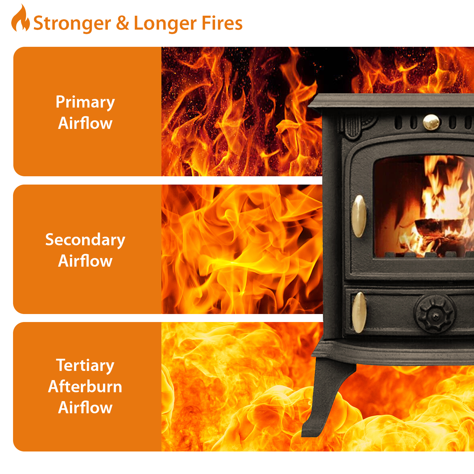This multi-fuel stove is compatible with wood logs, charcoal, and smokeless fuels, giving you versatility in how you heat your space.