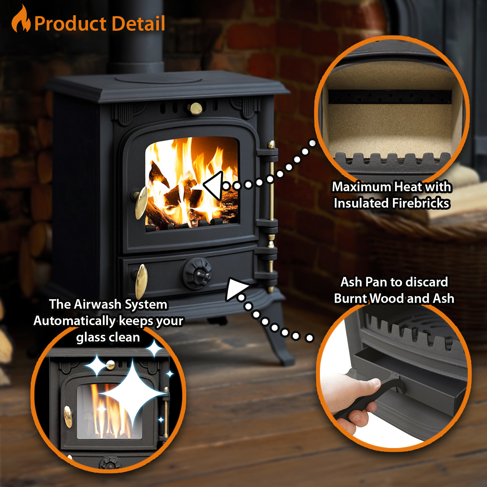 5kW Cast Iron Multifuel Stove + Firewood Starter Kit
