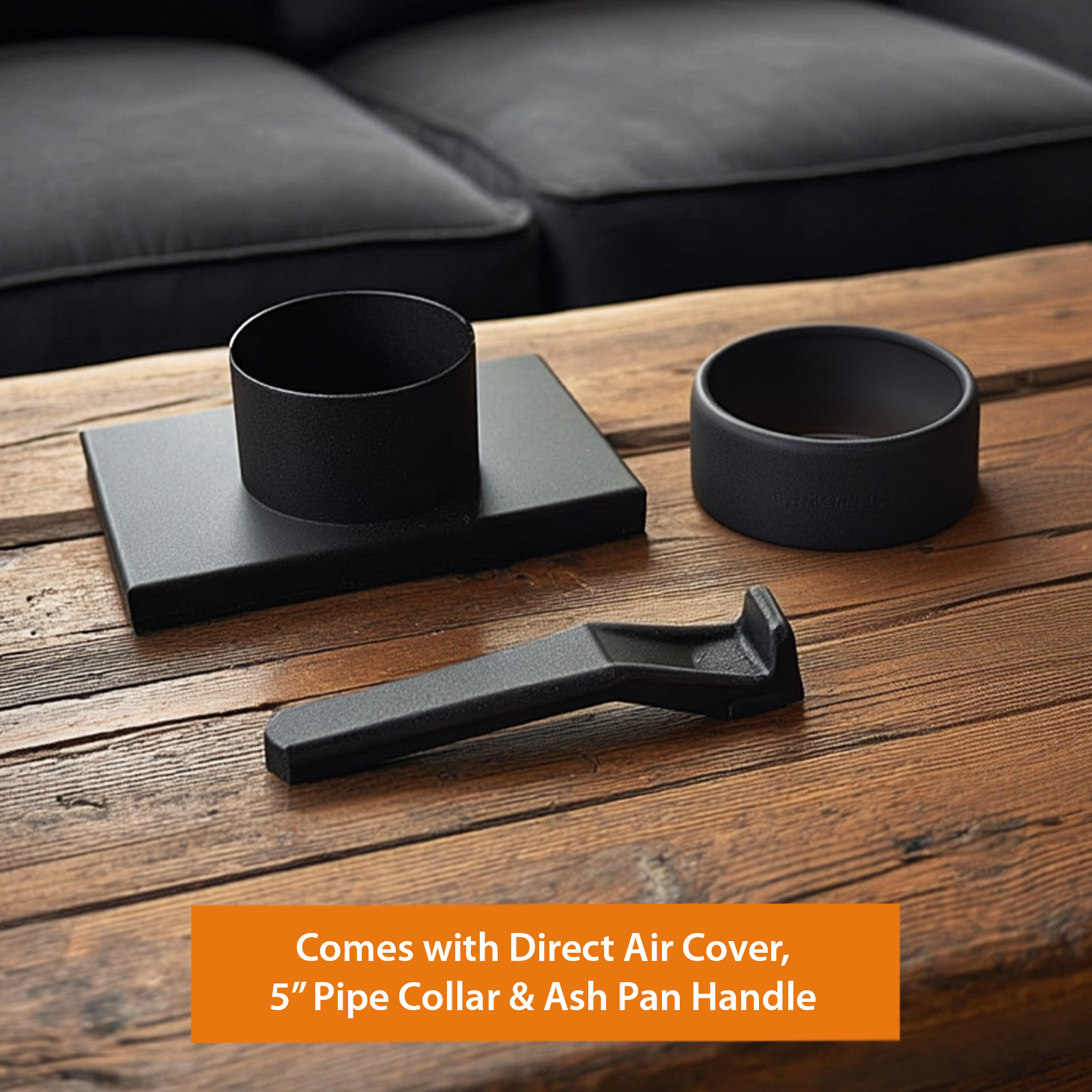 Includes: Baffle Plate, 5″ Pipe Collar, Ash Pan Handle