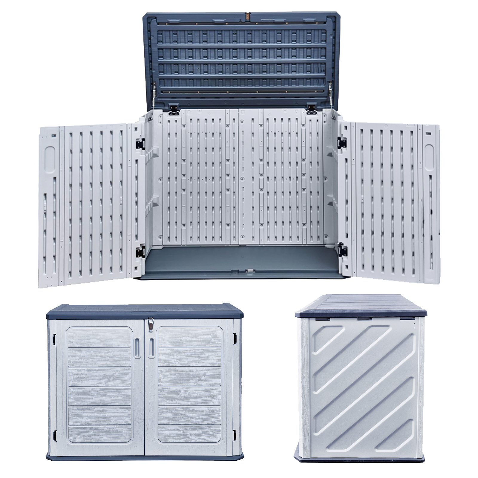 This Heavy-Duty Plastic Outdoor Storage Box offers a robust, weather-resistant solution for storing garden cushions, tools, toys, and more. Constructed from double-wall high-density polyethylene (HDPE) and reinforced with powder-coated steel bars, it delivers superior durability compared to standard single-wall boxes. Designed to endure the UK’s harsh weather conditions, this storage unit wont warp, crack, fade, or stain over time. Features include a non-slip PVC floor for added safety, wide double-opening doors for easy access, and kit-form delivery with full assembly instructions for quick setup.