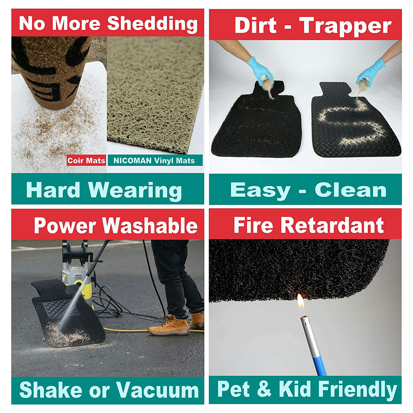 Our Nicoman Mats feature a flexible spaghetti coil design that effectively traps and removes dirt, providing superior performance compared to other mat types. The flexibility of the coils ensures a soft and cushioned surface for your feet or your pet’s paws, preventing abrasion or damage. This mat is especially ideal for use as a cat litter tray mat or feeding mat. Additionally, our Nicoman Doormats offer the same benefits, providing a soft, cushioned surface for your shoes without causing any abrasion to your footwear.